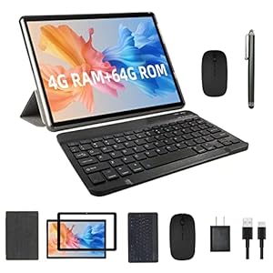 2023 Newest 2 in 1 Tablet, 10 inch Android 11 Tablet with Keyboard, 4GB+64GB, Tablets with Case Mouse Stylus, 1.8GHz Quad Core, 1280*800 HD Touch Screen, 8MP Dual Camera, Games, Wi-Fi, BT Tableta PC.